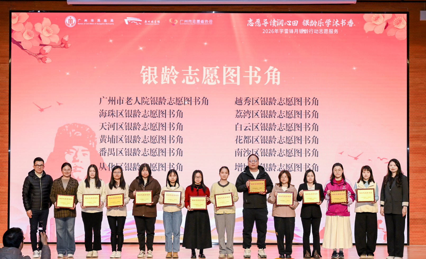 3月4日,2026年学雷锋月银龄行动志愿服务启动仪式在广州举行。活动以“志愿导读润心田,银龄乐学沐书香”为主题,由广州市民政局指导,广州市志愿者协会(下称“广志协”)、广州图书馆联合举办。活动期间,在原有4个银龄志愿图书角的基础上,广志协将在全市各区新增建设8个银龄志愿图书角点位,实现全市11区全覆盖,打造老年人身边的阅读服务阵地。
